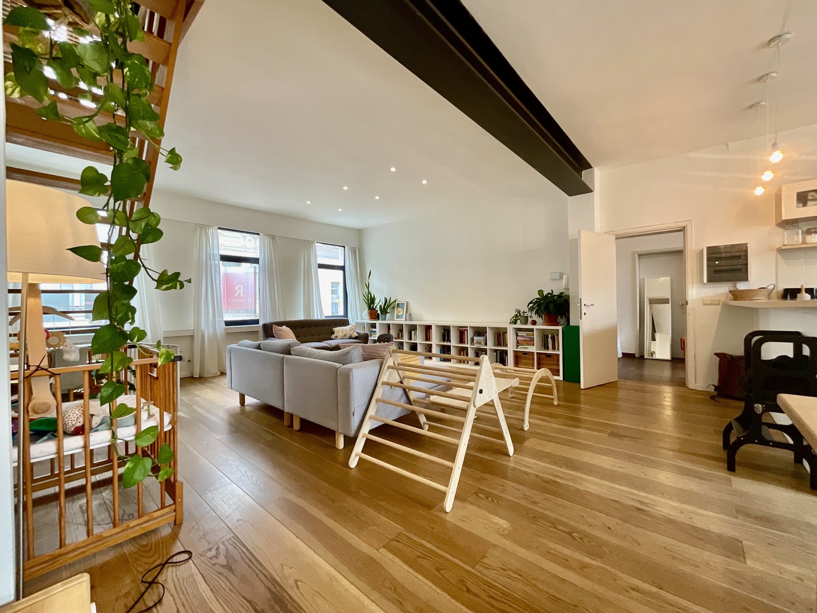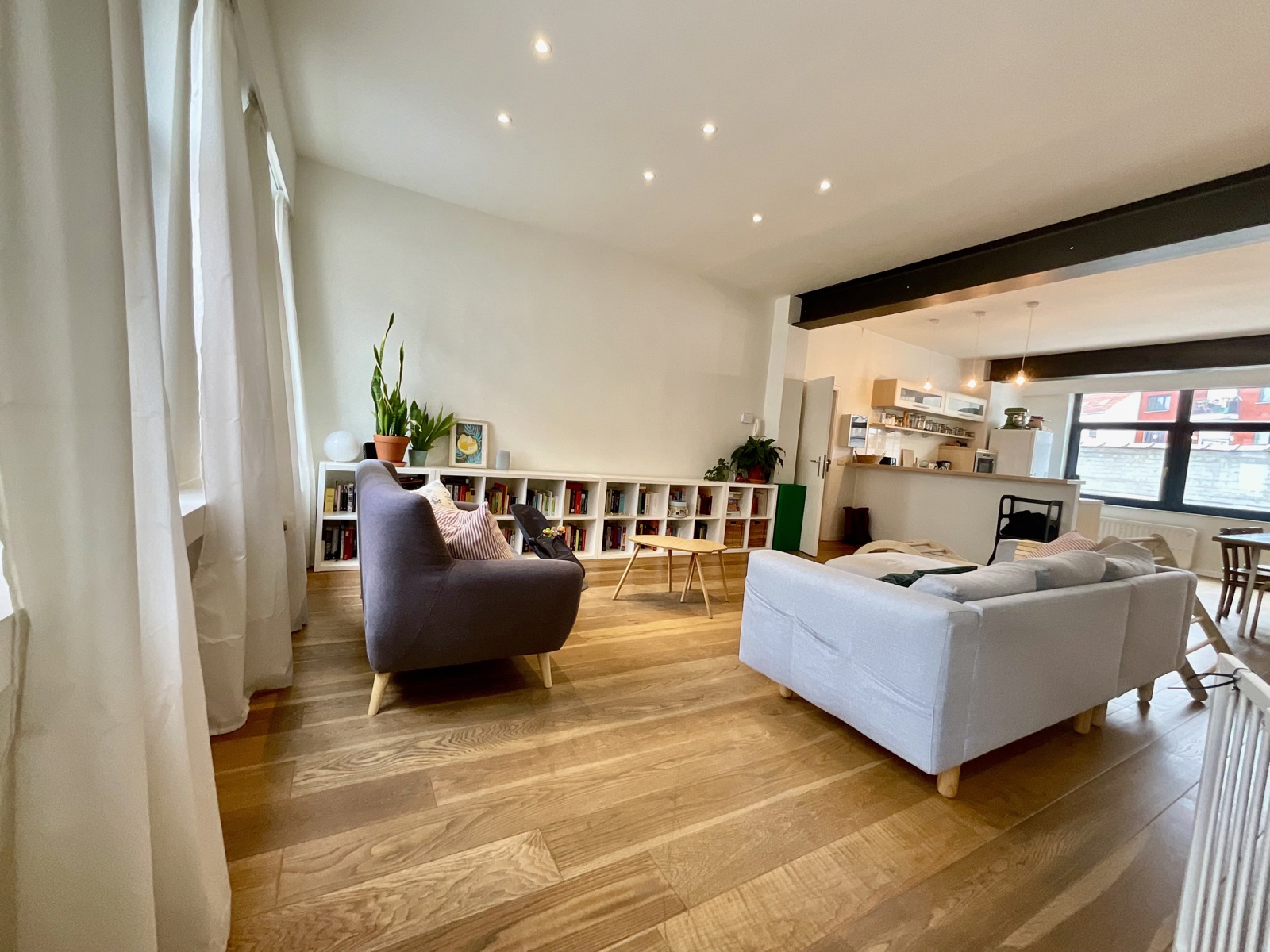 Ontdek deze prachtige triplex in een kleine mede-eigendom, met royale volumes en uitzonderlijk wooncomfort. Bij binnenkomst verwelkomt een ruime inkomhal met grote kelders en opbergruimte u. Er is ook een fietsenstalling in het gebouw. Op de eerste verdieping vindt u een ruime inkomhal die leidt naar een lichtrijke living met hoge plafonds, een open keuken en massieve houten vloeren die warmte en elegantie brengen. De tweede verdieping biedt een grote leefruimte, een ruim bureau met balkon aan de achterzijde en een aparte wasruimte, ideaal om werk en gezin te combineren. De bovenste verdieping herbergt twee comfortabele slaapkamers en een volledige badkamer met bad en douche. Perfect gelegen vlakbij de site van Tour & Taxis, met zijn restaurants, evenementen en groene ruimten, en op enkele minuten van het stadscentrum, met uitstekende toegang tot het openbaar vervoer. Een zeldzaam pand dat authentieke charme en modern comfort combineert. Info en bezoeken: Residency – 02/268.58.00
